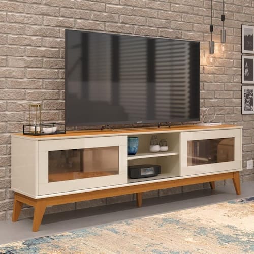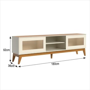Ambiente Principal: Sala de Estar | Largura: 180 cm | Complexidade da Montagem: Média | Pessoas necessárias para montagem: 1 | Altura: 52 cm | Profundidade: 36 cm | Suporta até: 30 kg | Possui iluminação Não | Peso 27 kg | Origem do produto Nacional | Necessita montagem: Sim | Possui portas: Sim | Possui gavetas: Não Possui Gavetas | Quantidade de caixas de embalagem: 1 | Possui prateleiras?: Sim | Possui nichos?: Sim | Possui espelhos?: Não Possui Espelhos | Possui vidro?: Sim | Modelo Lince; Rack; Estante TV; Sala de Estar; Quarto; Royal; | Marca: ViaNossa; ViaNossa Móveis; EDN Móveis; Lince; Royal | Material: MDP e MDF | Formato do móvel: Rack | Acabamento Pintura UV | Tempo de garantia: 3 meses | Tipo de garantia: Fabricante | Inclui manual de montagem: Sim Off White e Cedro