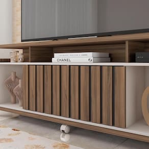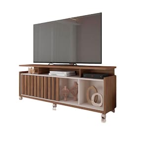 O Rack Bancada Thaissa de 160cm na cor Nogueira/Off White é a escolha ideal para quem busca unir elegância, funcionalidade e praticidade em um só móvel. Ele suporta TVs de até 70 polegadas sendo perfeito para salas compactas ou médias. Seu design moderno se destaca pela porta deslizante com detalhe ripado e nichos moldurados que valorizam ainda mais o visual do ambiente. A estrutura é composta por MDF, MDP e HDF 3mm, com acabamento em finish foil fosco um revestimento decorativo que simula texturas como madeira. O Rack conta com 1 porta de correr, 1 prateleira interna, nichos abertos moldurados e rodízios que facilitam a movimentação do móvel no ambiente. Transforme sua sala com o equilíbrio entre sofisticação e utilidade que só a Bancada Thaissa oferece. Dimensões do Produto: Altura: 64 cm Largura: 160 cm Profundidade: 38 cm Peso: 42 kg Especificações do Produto: Material da Estrutura: MDF; MDP; HDF 3 mm Acabamento: Finish Foil (FF) Escala de Brilho: Fosco Suporta TV de até: 70 Polegadas Peso Suportado: 30 Kg Distribuídos Possui Portas: Sim Quantidade de Portas: 1 Porta Tipo de Porta: Deslizante Possui Puxador: Não possui Possui Gavetas: Não possui Possui Prateleiras: Sim Quantidade de Prateleiras: 1 Praleteira Possui Nichos: Sim Possui Passa Fio: Não possui Possui Pés: Sim Tipo de Pés: Rodízios Diferenciais: Design sofisticado; Portas ripadas em pintura 3d; Nichos internos moldurados. Sistema de montagem: Parafusos/Cavilhas/Minifix Manual de Montagem: Sim Complexidade da Montagem: Média Montagem: Recomendamos que seja feita por um Garantia: 90 dias contra de fabricação Instruções de Limpeza: Utilizar um pano limpo e levemente úmido Quantidade de Volumes: 1 Caixa Medida das Embalagens: Caixa 1: 166,2x39,2x14,6cm : É feita somente até o térreo ou portaria. Confira sempre as medidas das embalagens para assegurar que o produto passe por portas e escadas do .
