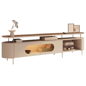 Rack TV 85 Pol 220cm 2 Portas Com LED Dalya Off/Castanho H01 - Mpozenato
