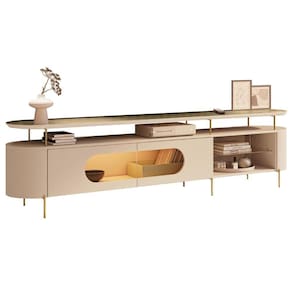Rack TV 85 Pol 220cm 2 Portas Com LED Dalya Off/Champanhe H01 - Mpozenato