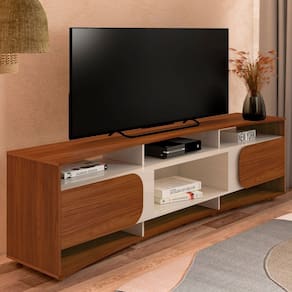 Rack Tv 85" Com 7 Nichos 2 Portas 2 Prateleiras Elegance Cedro / Off White -