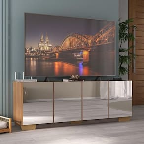 Transforme sua sala num cinema particular com o Rack TV até 50 Polegadas com Espelhos 4 Portas Multimóveis MP1083. Fabricado em MDP (15mm) e com acabamento acetinado (cerca de 20% de brilho), este rack oferece durabilidade e resistência, além de um design clean que proporciona um visual moderno e sofisticado para sua sala. Com 4 portas, você terá amplo espaço interno para guardar seus objetos e manter sua sala sempre organizada. Além disso, este rack suporta TV de até 50 polegadas (até 15kg) e conta com pés em polipropileno, que trazem um toque charmoso ao móvel. Os espelhos são de vidro, evitando que a imagem fique distorcida, e lapidados (passam por um processo para que as bordas não fiquem cortantes), garantindo maior segurança e deixando o móvel mais requintado.