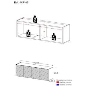 Altura: 39,5 cm | Largura: 123,5 cm | Profundidade: 31,5 cm
