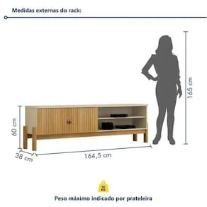 Rack Ouro ValdeMoveis Dimensões do Produto: Altura (cm) 60 cm Largura (cm) 164 cm Profundidade (cm 38 cm Material Principal: MDP/MDF Produto desmontado (necessita de montagem): Sim Montagem: MATERIAL MDP/MDF ACABAMENTO PINTURA UV COR PRINCIPAL CINAMOMO CINAMOMO NA | Cor: Cinamomo/Off-White