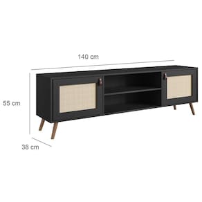 Explore o refinamento com o Rack Viena de 140cm da mais alta qualidade. Feito com precisão em MDP BP 15mm, cada detalhe revela um design que transcende o ordinário. A elegância se destaca no detalhe em tela sustentável e no puxador em couro, adicionando um toque luxuoso ao seu espaço.