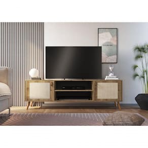 A funcionalidade não fica para trás, com o furo passa fio proporcionando uma solução discreta para a organização dos cabos. Os pés em madeira natural não só garantem estabilidade, mas também conferem um charme natural e atemporal ao rack. Além disso, o cuidado extra com feltro nos pés demonstra o compromisso com a proteção do seu chão contra riscos indesejados.