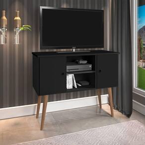 AS IMAGENS SÃO MERAMENTE ILUSTRATIVAS E PODEM SOFRER VARIAÇÕES DE COR E PEQUENOS DETALHES DE ACORDO COM O SEU MONITOR, ILUMINAÇÃO DO AMBIENTE E ATÉ MESMO A SUA PERCEPÇÃO Viena para Tvs de atà 40 Polegadas com PÃs em Madeira MaciÃa - 2 Portas - Preto