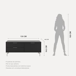 2 gavetas com corrediças telescópicas Abertura suave e espaço perfeito para objetos do cotidiano