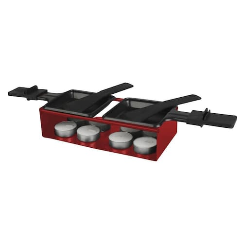 Raclete dupla de ferro cromado vermelha 13 peças Produzida em ferro cromado, a raclete dupla vai ser ideal para você preparar seu prato típico suíço, principalmente em ocasiões especiais. Ele é composto por duas panelas, um suporte, oito fogareiros e duas espátulas. Não pode faltar uma dessa em sua casa. Cor: vermelho Material: ferro, pp e nylon Medidas da embalagem: 21,5cm comp. X 11cm alt. X 6cm larg. Peso: 0,558kg Ean: 7896980418552