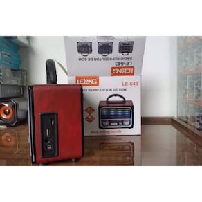 Rádio estilo retrô com tecnologia atual e qualidade impecável. Reproduz rádio nas frequências FM / MW / SW. de 3 bandas de alta sensibilidade. Antena longa. Acabamento em madeira vinho. Luz de disco cintilação. Bluetooth embutido. Entrada USB. Entrada para Cartão SD Entrada AUX/DC Potência 5W RMS Alimentação AC/DC AC 110V - 220V DC 3V (1x2 UM1) Possui bateria interna recarregável. Marca: Lelong Modelo: LE-643 Dimensões Aproximadas: 20cm x 14cm x 10cm Peso: 1.700 Itens Inclusos: - Radio lelong - Cabo de energia