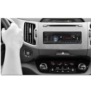 Além das entradas frontal auxiliar, micro cartão SD e USB de dados (não deve ser utilizado para recarga celular) você também pode ouvir suas playlists do celular através da conexão Bluetooth, conectar em seus aplicativos preferidos, passando a ter o controle de seu som, com iluminação, possui LED vermelho, Além de entretenimento o rádio possui comando de controle remoto, sendo possível controlar o rádio pelo mesmo.