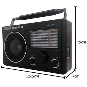 rádio retrô moderno com 11 bandas e conexões bluetooth, usb, sd, p2 para você curtir suas músicas onde estiver. Conta com bateria interna recarregável e suporte a 4 pilhas d para aumentar a autonomia. Neste kit vai 2 rádios no mesmo pacote. Observação: o produto tem uma chave de seleção de voltagem no compartimento das pilhas, enviaremos na voltagem de sua cidade para evitar que danifique o produto por engano. Sobre o produto: - marca: livstar - modelo: cnn-686bt - potência: 3w - bandas: fm / am / sw1-9 - alimentação: ac / dc - cor: preto com bordas de cor madeira - medidas da embalagem a x l x c : 8 x 16 x 27 cm - peso: 1,034 gramas