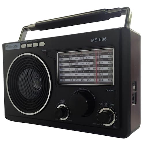 rádio retrô moderno com 11 bandas e conexões bluetooth, usb, sd, p2 para você curtir suas músicas onde estiver. Conta com bateria interna recarregável e suporte a 4 pilhas d para aumentar a autonomia. Neste kit vai 2 rádios no mesmo pacote. Observação: o produto tem uma chave de seleção de voltagem no compartimento das pilhas, enviaremos na voltagem de sua cidade para evitar que danifique o produto por engano. Sobre o produto: - marca: livstar - modelo: cnn-686bt - potência: 3w - bandas: fm / am / sw1-9 - alimentação: ac / dc - cor: preto com bordas de cor madeira - medidas da embalagem a x l x c : 8 x 16 x 27 cm - peso: 1,034 gramas