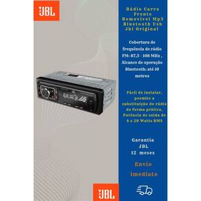 Rádio Carro Frente Removível Mp3 Bluetooth Usb Jbl