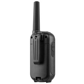 Conteúdo da embalagem: 2 rádios, 2 clips de cinto, 6 pilhas AAA recarregáveis, 1 fonte, 1 cabo USB em Y, 1 manual