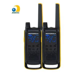 O rádio Talkabout T470BR é o companheiro de viagem robusto que você precisa. Com uma classificação IPX4, é resistente a intempéries, capaz de suportar ambientes severos como chuva e neve. Além disso, a lanterna LED embutida facilita a navegação no escuro. Agora, o kit vem com um par de fones de ouvido para você se comunicar com mais privacidade e conveniência, mantendo você mais seguro e conectado em qualquer lugar. Características Principais Sem necessidade de : Opera na banda FRS, sem burocracia. 22 canais e 121 códigos de privacidade: Encontre sempre um canal livre e seguro para suas conversas. Ipx4 resistente a intempéries: Desenvolvido para aguentar chuva e neve. Função de chamada em grupo com emparelhamento fácil: Conecte-se rapidamente com sua equipe. Alcance de até 35 km: Mantenha a comunicação em longas distâncias em condições ideais . Duas fontes de energia: Use a bateria recarregável inclusa ou pilhas AA não inclusas para maior flexibilidade. Carregamento USB: Recarregue de forma prática em qualquer lugar. Ivox/vox mãos livres: Converse sem precisar segurar o rádio. Alerta VibraCall: Receba chamadas de forma discreta em ambientes barulhentos. Compatibilidade universal: Comunica-se com qualquer rádio bidirecional FRS/GMRS. Detalhes Técnicos Marca: Motorola Modelo: T470BR Cor: Amarelo com Preto Bateria: NiMH 800 mAH até 12 horas de duração Dimensões: 5,56 x 19,1 x 3,25 cm Peso: 0,626 kg : 12 meses Certificado Anatel: 032392001699 Uso Geral FRS - aprovado para utilização somente no Brasil Observação sobre o alcance: O alcance máximo de 35 km é calculado em condições ideais, sem obstruções. Fatores como terreno, clima e interferência podem limitar a distância real de comunicação. Itens Inclusos 1 par de rádios T470BR 1 par de fones de ouvido 2 presilhas de cinto 2 baterias recarregáveis 1 carregador em Y 16 adesivos 1 guia do usuário