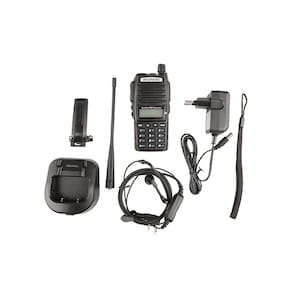 Rádio HT comunicador Baofeng Dual Band UV82 Rádio FM, potência de TX, range de frequência: VHF 136.00174.00 e UHF 400.00520.00, programação por PC e manual, função rádio FM, super qualidade de transmissão, muito superior ao Baofeng 5R, identificação de menu por voz (inglês e chinês), DTMF code 50 subtons CTCSS e 104 subtons DCS, tempo máximo de transmissão - timeout timer (TOT), espaço de frequência 5,6.25,10,12.5,20,25kHz, função de economia de bateria, função VOX (ativa TX por voz), func bloqueio de TX em canal oculpado (BCL), aviso de bateria fraca, dual band, dual display e dual recepção, luz de teclado e visor automática, 3 modos de scan (time, carrier wave, search), PTTID (transmite DTMF quando aperta PTT, solta PTT ou durante TX), possibilidade de operação em repetidora VHF, UHF e crossband, seleção de opção de menu digitando número U/V, cross band dual recepção, alarme de emergência, high & low power switchover, priory scanning function, wide/narrow band selection, ANI code edition, relay forwarding confirmed 1750 Hz, função redução de ruído, dimensão: 116x58x36mmIndicador de carga da bateria