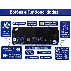 - conectividade versátil: além de suportar o celular, o rádio automotivo pode se conectar a outros dispositivos através de tecnologias como bluetooth, usb ou microsd card, ampliando as opções de reprodução de áudio.