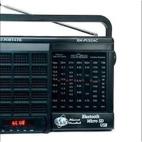 Radio Portatil 7 Faixas Am/fm/oc 1000w Bluetooth Rmpu32ac Motobras RÁDIO PORTÁTIL MOTOBRÁS RM-PU32AC 7 FAIXAS AM/FM/OC 1000W BLUETOOTH Curta suas músicas onde e quando quiser com o Rádio Motobrás RM-PU32AC. O produto oferece possibilidade de você plugar dispositivos móveis para curtir o seu som com potência de 1000W. Sintonize na sua estação de rádio favorita e desfrute da melhor qualidade de áudio. Ele é portátil assim você pode levá-lo a qualquer lugar, e ainda conta com controle remoto aumentando sua usabilidade. Com esse rádio música não vai faltar.