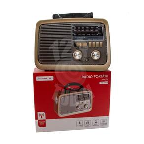 O Rádio Retrô Portátil com Bluetooth, AM/FM e Lanterna - Cor Marrom combina o charme do design clássico com a tecnologia moderna. Ele permite reviver a experiência nostálgica de sintonizar suas estações favoritas em um estilo vintage, complementado pela cor marrom elegante. Graças à bateria recarregável, você pode levá-lo a qualquer lugar, sem precisar de pilhas. Este rádio analógico cobre uma ampla faixa de frequência, incluindo 88-108 MHz para FM e 530-1600 kHz para AM, garantindo que você tenha diversas opções de estações. Compacto e leve, mede 14 cm x 20,5 cm x 8 cm e pesa apenas 804 g, sendo fácil de transportar e armazenar. Além da função de rádio, ele também possui conectividade Bluetooth, permitindo que você conecte seu smartphone ou dispositivo compatível e ouça suas playlists favoritas diretamente no aparelho. Um diferencial é a lanterna embutida, que pode ser ativada com um toque, oferecendo uma fonte de luz prática para emergências ou momentos ao ar livre, como acampamentos. Homologação Anatel: 005491708855 Marca: Não Informado Ean: 7908227203675