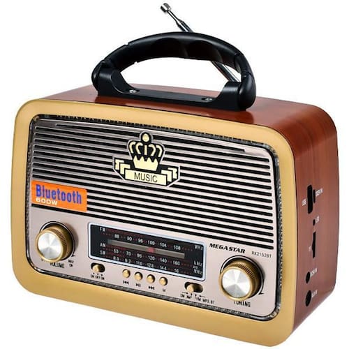 Radio Portatil Megastar RX2152BT AM/FM/SW 600 Watts P.M.P.O com Bluetooth Bivolt - Marrom/Dourado Reviva a nostalgia do passado com um toque moderno com o Radio Portátil AM/FM/SW Megastar RX2152BT. Com uma potência de 600 Watts P.M.P.O, este rádio combina o charme vintage com a conveniência da tecnologia atual. Sintonize suas estações AM, FM e SW favoritas e mergulhe na clareza do som. Além disso, a conectividade Bluetooth permite que você reproduza suas músicas favoritas de dispositivos compatíveis, enquanto o leitor SD proporciona ainda mais opções de reprodução.