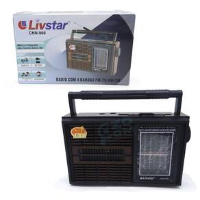 Radio cnn 966 entrada para fone de ouvido am e fm portatilO rádio portátil livstar é um rádio moderno desenvolvido com alta tecnologia e com um designer retro sensacional é leve, fácil de carregar, possui alça para transporte e funciona com energia elétrica bivolt , pilhas ou energia para você se divertir onde e quando quiser.Este rádio portátil livstar conta com 4 bandas am fm.Tv sw , você pode sintonizar as suas emissoras de rádio e ouvir suas músicas favoritas. A companhia perfeita para toda horaMedidas: 18 cm largura6 cm profundidade11 cm alturaFunçõesAlça de mãoAntena telescópiaControle de ajustesAjustes de bandaControle de volumeEntrada para cabo de forçaAlto falante hi - fiEntrada para foneCompartimento para pilhasNão tem bluetooth. Marca: Spkrk