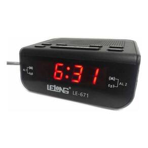 Rádio Relógio Digital Despertador Alarme Duplo Lelong Le-671 Relógio Despertador Digital Elétrico De Mesa Radio Am FmFácil de utilizar Definição simples do relógio para configurar a hora e o alarme sem necessitar de instruções- Regulagem de luminosidade Acorde ao som da sua estação de rádio favorita ou de um alarme Temporizador para adormecer ao som da sua música favorita Repetição do alarme para dormir mais um pouco Pilha de reserva assegura a conservação da memória da hora durante falhas de energiaO visor amplo permite uma fácil leitura do conteúdo no ecrã. Agora, pode ver as horas e o alarme facilmente, mesmo à distância. Ideal para pessoas de idade mais avançada ou com problemas de visão.Sintonizador FM/MWSintonizador estéreo FM/MW AM Definição simples do relógioA hora e o alarme são tão fáceis de configurar que provavelmente nem será necessário consultar o Manual de início rápido ou as Instruções de utilização. Basta observar os botões do rádio relógio para definir a hora e o alarme.Acorde com o rádio ou aviso sonoroDesperte ao som da sua estação de rádio favorita ou de um sinal sonoro. Defina o alarme no seu rádio relógio Lelong para acordar com a estação de rádio que ouviu por último ou escolha acordar com um sinal sonoro. Quando chegar a hora de despertar, o rádio relógioAlarme duploO sistema de áudio inclui duas horas de alarme diferentes. Defina uma hora de alarme para o acordar e outra hora de alarme para acordar outra pessoa.Repetir AlarmePara evitar que adormeça e se atrase, função de repetição do alarme. Se o alarme tocar e quiser dormir mais um pouco, basta premir uma vez o botão de repetição do alarme e voltar a dormir. Nove minutos depois o alarme volta a tocar. Pode continuar a premir o botão de repetição do alarme a cada nove minutos até o desligar totalmente.Temporizadoro temporizador permite-lhe decidir durante quanto tempo pretende ouvir música - ou uma estação de rádio à sua escolha - antes de adormecer. Basta definir um limite de tempo até 1 hora e escolher uma estação de rádio para ouvir enquanto adormece.
