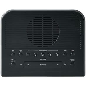 - Ajuste digital com 10 estações predefinidas de memória (5 FM, 5 AM)