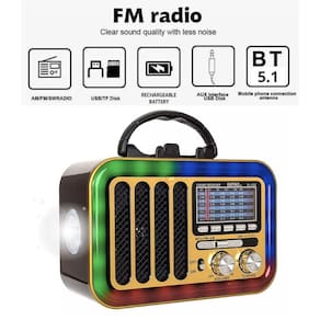 Rádio Retro 5w Bluetooth 5.1 Led Rgb Com Lanterna