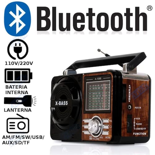 CAIXA DE SOM PORTÁTIL COM RÁDIO AM/FM ANALÓGICO, FM ESTEREO, ENTRADA USB E ENTRADA PARA CARTÃO SD, ENTRADA AUXILIAR, BIVOLT - MODELO A - 1088 COM BLUETOOTH