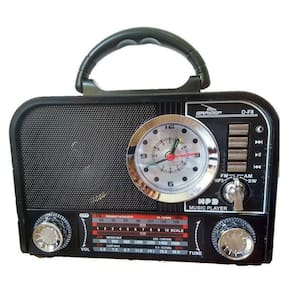 Rádio Retro Bluetooth Fm Am Mp3 Sd Card Usb RelógioRádio Retro, Bluetooth, Relógio, Despertador, Cartão Sd, Usb, Microfone P2, Radio 3 Bandas - Fm, Am e Sw, Mp3, Luz do relógio, Alça para transporte, Bateria recarregável, AntenaConexão BluetoothEspecificações:Marca: GrasepModelo: D-F8Potência: 8wAlimentação: 4,5VdcCapacidade da bateria interna: 1200mAhFrequência de resposta: 150 15000HzImpedância: 8 OhmsSensibilidade: 80 dBDiâmetro do alto-falante: 75mmDimensões CxLxA : 20 cm x 16 cm x 7 cmBivolt 110v ou 220v - chaveadoConteúdo da Embalagem:01 Rádio Bluetooth D-F801 Cabo AC 1,5m01 Manual de instruções