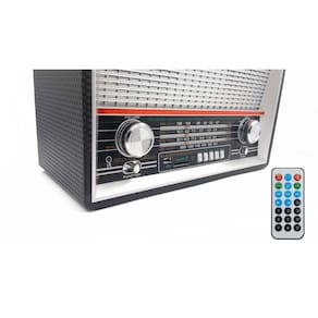 Radio edição retro portátil usb recarregável bluetooth de alta sensibilidade 4.0 polegadas alto falante rms: 4ohms 8x2 Ac/dc alimentação Entrada aux cabo p2 para reproduzir audio de diversos aparelhos Ex: mp3, computador, celular, tablet entre outros Ac: 110v e 220v bivolt chaveado manual Especificações Dimensões do aparelho: 32 cm comprimento x 14,5 cm largura x 20 cm de altura Peso 2,693 kg Medida do cabo de força 1,15 m Faixa de frequência: Am: 530-1600 okhz Fm: 87-108 mhz Sw1: 2.8-10.1 omhz Sw2: 9.9-22.1 omhz Uso de rádio pode durar em torno de 400 minutos Homologação Anatel: 060792000160 Ean: 7898577063664