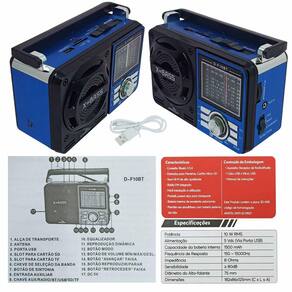 Rádio retrô grasep portátil analógico am/ fm bluetooth usb 10w Cor: azul rádio analógico retrô portátil am/fm / usb/pen drive/ sd