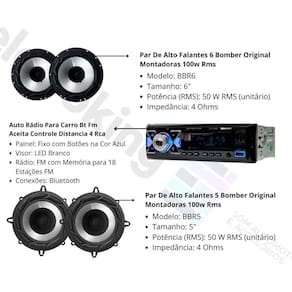 O kit de produto Rádio Roadstar RS2714BR com 2 USB/SD/FM/AUX, acompanhado por 2 Falantes Bomber de 6" (100W) e 2 Falantes Bomber de 5" (100W), é uma solução abrangente para aprimorar o sistema de áudio automotivo. O rádio oferece conectividade Bluetooth, 2 portas USB, leitor de cartão SD, sintonizador FM e entrada auxiliar, proporcionando uma ampla variedade de opções para reprodução de música. Os Falantes Bomber de 6" e 5" complementam o conjunto, entregando potência de 100W cada, resultando em uma experiência sonora imersiva e de alta qualidade. Com este kit, os entusiastas de áudio automotivo podem desfrutar de viagens mais envolventes, onde a qualidade sonora se destaca em cada momento.