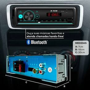 RÁDIO H-TECH HT-1015 COM BLUETOOTH USB FM MP3 CONTROLE VIRTUAL. O Rádio HT 1015 é a escolha ideal para quem busca um equipamento excelente, prático e multiuso. Com um design moderno e funcionalidades versáteis, ele conta com equalização de áudio nos modos POP, ROCK, CLASS e FLAT, proporcionando a melhor experiência sonora para todos os estilos. Possui entrada USB 2.1 para carregamento rápido de celulares, além de uma segunda entrada USB exclusiva para reprodução de músicas. A conectividade Bluetooth permite atender chamadas com segurança e reproduzir músicas sem fio, enquanto o controle via aplicativo oferece ainda mais praticidade no uso diário. Com duas saídas de áudio RCA, o HT 1015 garante compatibilidade com diferentes sistemas de som, além de contar com a função de mudança de pastas para facilitar a navegação pelas músicas. Seu conector de 16 vias assegura uma instalação segura e eficiente. Ideal para quem valoriza tecnologia, conectividade e qualidade de áudio em um único produto. PRINCIPAIS CARACTERÍSTICAS: - Auto Rádio MP3 - Equalização: POP/ROCK/CLASS/FLAT - 1 Entrada USB: 2.1 Para carregar celular - Entrada USB: Reproduz músicas - Bluetooth: Atende chamadas e reproduz músicas - Controle via Aplicativo - 2 Saídas de áudio RCA - Muda de pastas - Conector 16 vias ESPECIFICAÇÕES : Inteiro: - SNR (Relação sinal-ruído): 65 dB - Resposta de frequência: 20 Hz – 20 KHz - Saída de áudio: Sim - Controle de tom: Graves: 100 Hz e Agudos: 10 KHz AMPLIFICADOR DE POTÊNCIA: - Saída: Alto-falante - Impedância do alto-falante: 4 – 8 - Potência máxima de saída: 4 x 25W FM: - Frequência FM: 76 MHz – 108 MHz - Antena Terminal: Conector de antena externa - Frequência Intermediária: 10 MHz - Sensibilidade: 22 dB - SNR (Relação sinal-ruído): 60 dB - Resposta de frequência: 30 Hz – 15 KHz - Distorção (1 KHz): < 1% INFORMAÇÕES TÉCNICAS: - Altura: 20cm - Comprimento: 7cm - Largura: 10cm - Peso: 0,500kg - Potência: 4x25W RMS CONTEÚDO DA EMBALAGEM: - 1 Radio H-tech 1015 - 2 Chicotes para a instalação - Manual de instruções