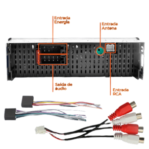 Entradas e Saídas de Áudio e Vídeo: 02 Saídas RCA Linha de Conexão de Força 12v Conector ISO