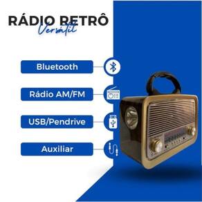 Rádio vintage retrô antigo bluetooth usb am fm usb led potente Atenção: cores enviadas aleatoriamente funciona também direto na tomada Características - rádio am/fm/sw em 3 bandas - bluetooth - entrada usb - entrada auxiliar - cartão sd/tf - com bateria recarregável - antena para sintonizar rádio - possui luz led decorativo - com lanterna led - produto bivolt: com chave para mudar a voltagem: 110v/220v Especificações - marca: altomex - modelo: a-3188bt - potência: 5w - rms: 3.0 alto falante 4ohms - alimentação: bateria recarregável ou pilha d grande não incluso - ac: 110v/60 hz - 220v/50hz - frequência fm: 88 -108 mhz - frequência am: 530 - 1600 khz - frequência sw: 5.9 - 18 mhz - ac/dc alimentação - dimensão lxaxp : 20,5 cm x 14 cm x 8 cm Itens inclusos: - 01 rádio portátil a-3199bt - 01 cabo de alimentação Homologação Anatel: 118782214976 Marca: Não Informado Ean: 0968175326830