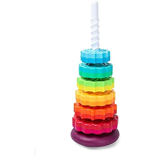 Rainbow Tower Stack Toy Color Spining Tower Building Blocks Ring Stack para crianças Brinquedos de cognição educacional