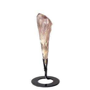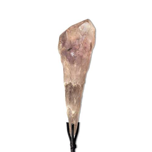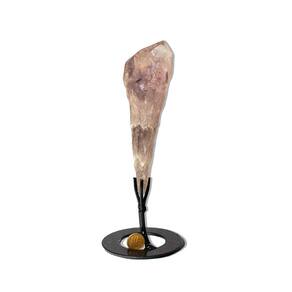 Adquira esta rara formação de raiz de ametista bruta com ponta, um cristal natural impressionante, ideal para quem busca um item único e cheio de energia para o seu ambiente. Esta peça fascinante vem com base serrada e é apoiada sobre uma fatia de geodo cristalizado polido manualmente, garantindo um toque de sofisticação e beleza. Ideal para:\nMesa de escritório Peso de papel Colecionadores de cristais Uso esotérico e energização de ambientes Presentes especiais e decoração\nDetalhes da Peça:\nNome da Pedra: Ametista Cor da Pedra: Tons suaves de roxo e lilás Corte da Pedra: Pedra bruta com base em metal inclusa Claridade da Pedra: Semi-translúcida a translúcida Medidas Aproximadas: 22,5cm com base e 17 x 5 sem base Peso Aproximado: 260g sem base Origem: Rio Grande do Sul, Brasil e Uruguai\nA Ametista é um cristal altamente valorizado por suas propriedades espirituais e energéticas. Ideal para promover paz, tranquilidade e equilíbrio, a ametista é uma excelente escolha para decoração e energização de ambientes. Cada peça é única e traz consigo a energia vibrante da natureza. Por que escolher a Raiz de Ametista Bruta? Além de ser uma excelente adição à sua coleção, este cristal possui qualidades que ajudam a transformar a energia de seu espaço. Sua presença não só embeleza o ambiente, mas também contribui para uma atmosfera calma e harmoniosa. Perfeita para quem deseja um toque esotérico e ao mesmo tempo sofisticado, a raiz de ametista é ideal para o seu escritório ou para presentear alguém especial. Adquira já a sua Raiz de Ametista Bruta com Ponta e transforme seu espaço com o poder energético desta pedra única! Marca: CristaisdeCurvelo