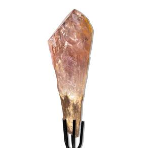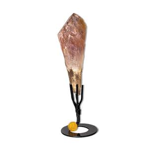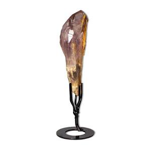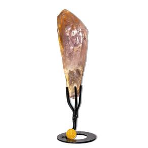 Adquira esta rara formação de raiz de ametista bruta com ponta, um cristal natural impressionante, ideal para quem busca um item único e cheio de energia para o seu ambiente. Esta peça fascinante vem com base serrada e é apoiada sobre uma fatia de geodo cristalizado polido manualmente, garantindo um toque de sofisticação e beleza. Ideal para:\nMesa de escritório Peso de papel Colecionadores de cristais Uso esotérico e energização de ambientes Presentes especiais e decoração\nDetalhes da Peça:\nNome da Pedra: Ametista Cor da Pedra: Tons suaves de roxo e lilás Corte da Pedra: Pedra bruta com base em metal inclusa Claridade da Pedra: Semi-translúcida a translúcida Medidas Aproximadas: 24cm com base e 17 x 5,5 sem base Peso Aproximado: 240g sem base Origem: Rio Grande do Sul, Brasil e Uruguai\nA Ametista é um cristal altamente valorizado por suas propriedades espirituais e energéticas. Ideal para promover paz, tranquilidade e equilíbrio, a ametista é uma excelente escolha para decoração e energização de ambientes. Cada peça é única e traz consigo a energia vibrante da natureza. Por que escolher a Raiz de Ametista Bruta? Além de ser uma excelente adição à sua coleção, este cristal possui qualidades que ajudam a transformar a energia de seu espaço. Sua presença não só embeleza o ambiente, mas também contribui para uma atmosfera calma e harmoniosa. Perfeita para quem deseja um toque esotérico e ao mesmo tempo sofisticado, a raiz de ametista é ideal para o seu escritório ou para presentear alguém especial. Adquira já a sua Raiz de Ametista Bruta com Ponta e transforme seu espaço com o poder energético desta pedra única! Marca: CristaisdeCurvelo