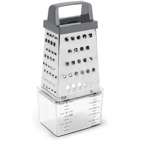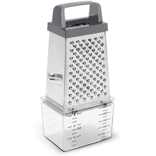 Especificações Produto: Ralador 4 Faces com Coletor Linha: Top Pratic Material do corpo: Aço inox Material do coletor: Acrílico transparente com medidor Material da alça: Poliestireno Dimensões: 8,8 x 6,2 x 20,5 cm Uso indicado: Ralar queijos, legumes, frutas e especiarias