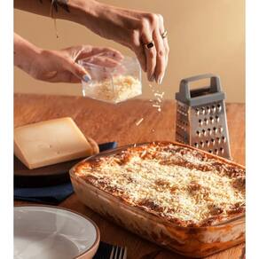 Produzido em aço inox, o ralador é resistente, durável, higiênico e fácil de limpar, ideal para o uso diário. Seu grande diferencial é o coletor em acrílico transparente com medidor integrado, que evita sujeira na bancada, permite armazenar os alimentos ralados e facilita o controle da quantidade utilizada nas receitas.
