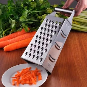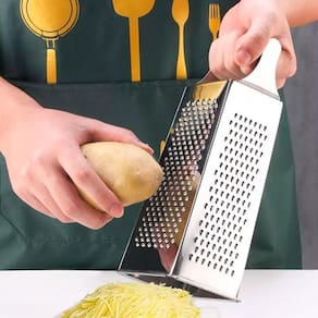 O ralador de 04 faces em inox é uma ferramenta versátil e prática para preparar ingredientes para receitas, como queijos, legumes, frutas, chocolate e nozes. Ele pode ser utilizado tanto em casa como em restaurantes ou cozinhas profissionais.