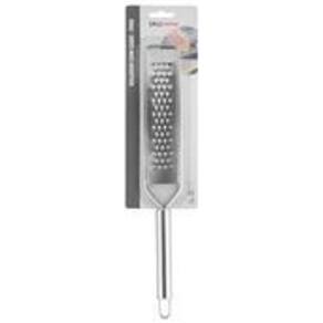Ralador Com Cabo. Cozinha equipada para fazer as refeições favoritas em qualquer momento com muito mais habilidade e dedicação; O ralador fino com cabo de aço inox é um deles e tem a qualidade necessária para ralar os alimentos com facilidade e preservar o sabor; Indicado para ralar queijos, legumes, frutas e chocolates mais finos, além de ter cabo para facilitar. Tamanho.: 4,5 x 33,5 cm Peso.: 0,090 Kg.
