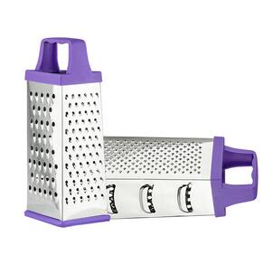 Base Colorida e Segura: A base de plástico disponível em cores vibrantes (Azul, Laranja, Roxo, Verde) proporciona estabilidade e uma pegada segura durante o uso, além de adicionar um toque de alegria ao seu ambiente. Ralador de Cozinha Inox 4 Lados Retangular Queijos Vegetais.