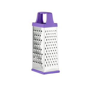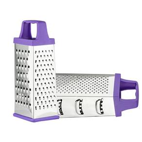 Base Colorida e Segura: A base de plástico disponível em cores vibrantes Azul, Laranja, Roxo, Verde proporciona estabilidade e uma pegada segura durante o uso, além de adicionar um toque de alegria ao seu ambiente. ralador de Cozinha Inox 4 Lados Retangular Queijos Vegetais.