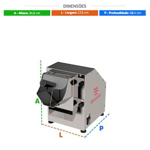 Especificações: - Estrutura em aço inox; - Bocal removível em aço inox; - Capacidade de produção de 20 a 30 kg/hora; - Acompanha 3 discos de aço inox de 150 mm; - Equipamento bivolt; - Fácil limpeza e higienização; - Medidas totais: 346 x 276 x 484 mm (AxLxP); - Peso líq: 12,8 kg; - Potência: 320/230 W; - Consumo médio: 0,26 kWh;