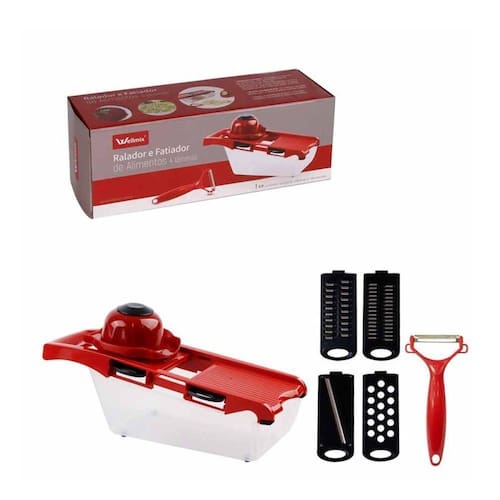 01 Jogo 6 Peças Ralador e Fatiador de Alimentos Com 4 Lâminas - Vermalha