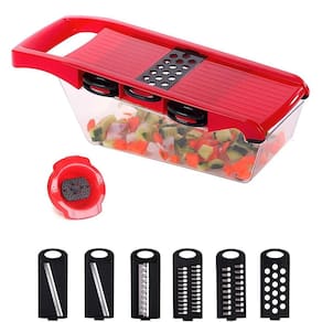 Itens Inclusos: - 6x Lâminas de corte; - 1x Placa de corte; - 1x Protetor de mão; - 1x Caixa de armazenamento; - 1x Descascador de legumes.