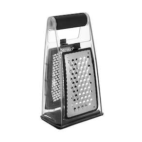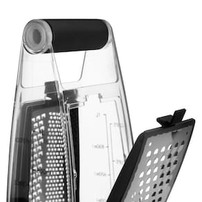 Versátil, o Ralador Easy vai facilitar as suas receitas com praticidade! Acompanha reservatório em acrílico integrado, com base em plástico e silicone para armazenar os alimentos ralados e evitar desperdícios. O reservatório conta com informação de medidas em xícaras de 1 a 4 e em litros de 200 ml a 1 litro. As lâminas afiadas em aço inox são intercambiáveis. Eficientes em ralar diferentes espessuras de alimentos como queijos, legumes, chocolates as lâminas podem ser removidas para limpeza. Possui design ergonômico com alça, para maior segurança e conforto durante seu uso.